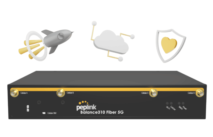 Der Balance 310 Fiber 5G verfügt über Glasfaser-, Mobilfunk- und Ethernet-Anschlüsse und ist somit besonders anpassungsfähig. Hohe Geschwindigkeiten ohne Abstriche bei der Zuverlässigkeit – mit der SpeedFusion Hot-Failover-Technologie können Sie nahtlos zwischen 5G und Glasfaser wechseln, wenn eine Verbindung ausfällt, und somit Ihre Unternehmenskonnektiviät optimieren.