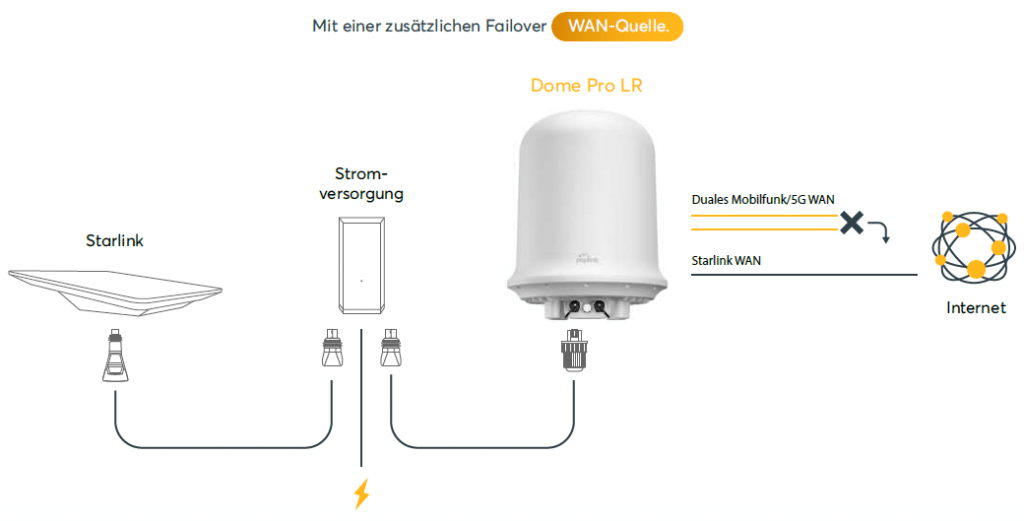 Der Dome Pro LR kombiniert einen Router und integrierte Antennen in einem einzigen Gerät. So gewährleistet er minimale Kabeldämpfung und eine optimale Leistung. Außerdem kann er mit nur einem einzigen Kabel bequem mit Strom versorgt werden.